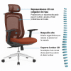Silla ergonómica Icon-H Plus en vibrante color naranja, con respaldo de malla transpirable, soporte lumbar y reposacabezas 2D ajustables, reposabrazos 3D y mecanismo reclinable de 3 posiciones. Ideal para oficinas modernas y home office, combinando comodidad, funcionalidad y estilo.