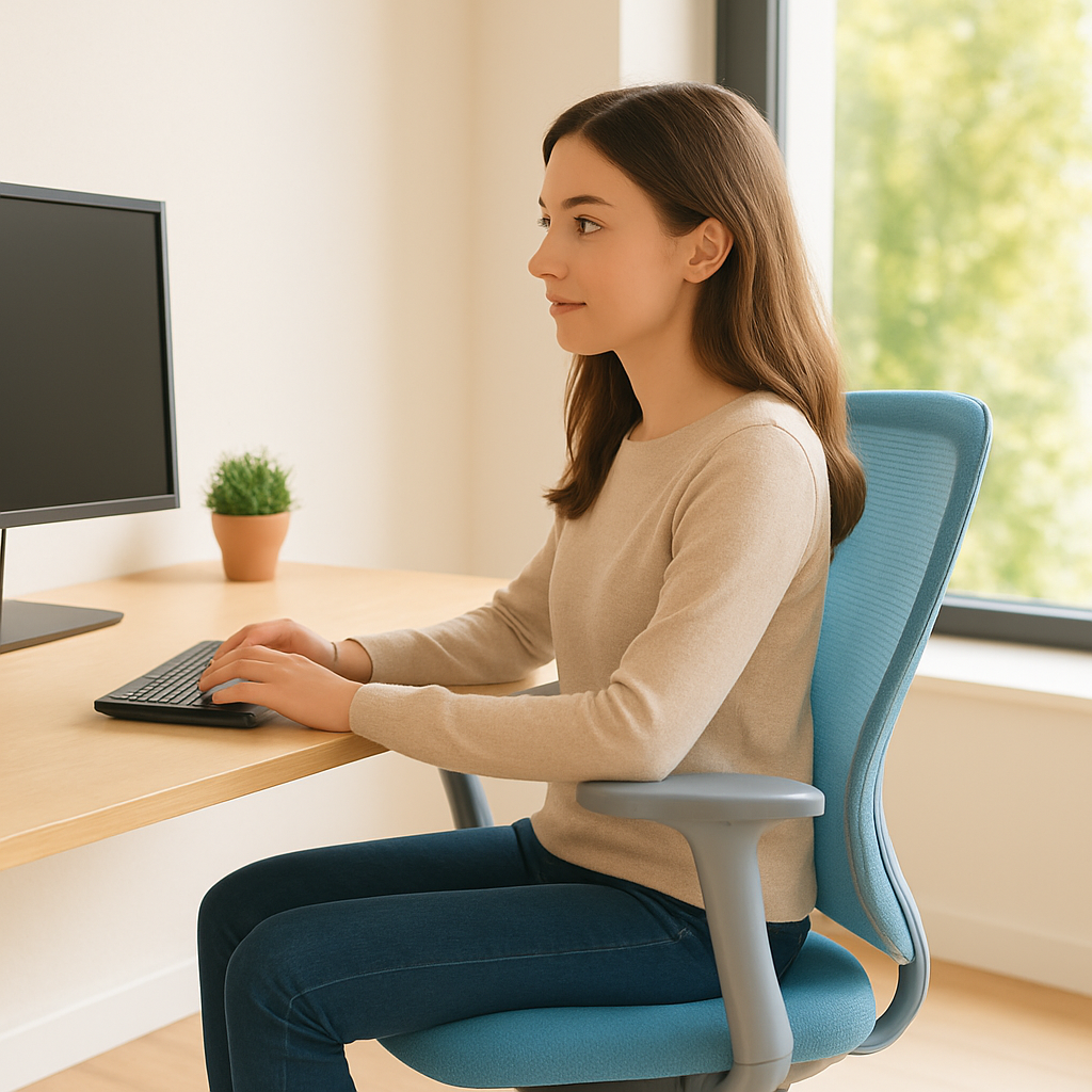 La silla Sammy-MG incorpora reposabrazos ajustables, que pueden regularse en altura para ofrecer un apoyo personalizado a los brazos y evitar tensiones en hombros y muñecas. Esta característica la convierte en una silla ideal para tareas prolongadas frente al ordenador o en posiciones de escritorio.