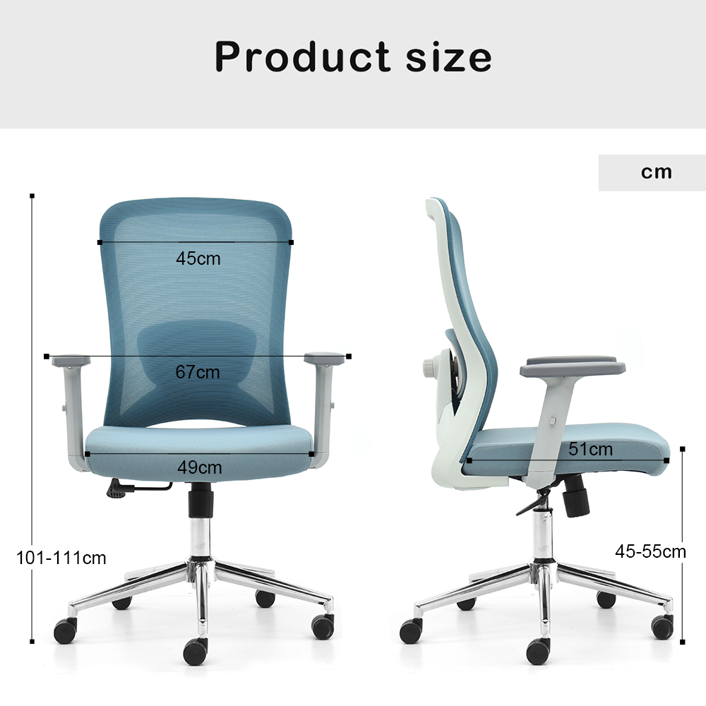 Silla de oficina ergonómica Sammy-MG con respaldo de malla media altura, soporte lumbar 2D y reposabrazos ajustables